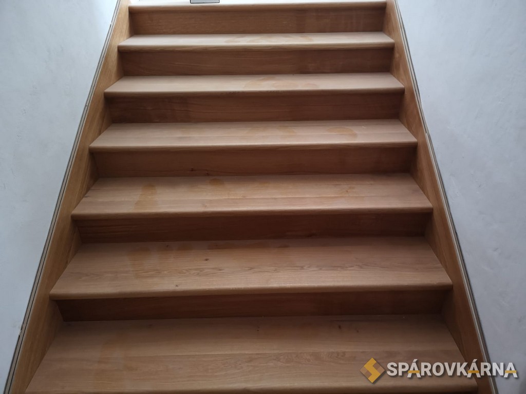 Ukázka realizace dubových schodů. Přesněji, obložení schodů masivními dobovými nášlapy (někdy také jako dubové schodnice). Pro dřevěné schody vyrábíme na zakázku polotvary: