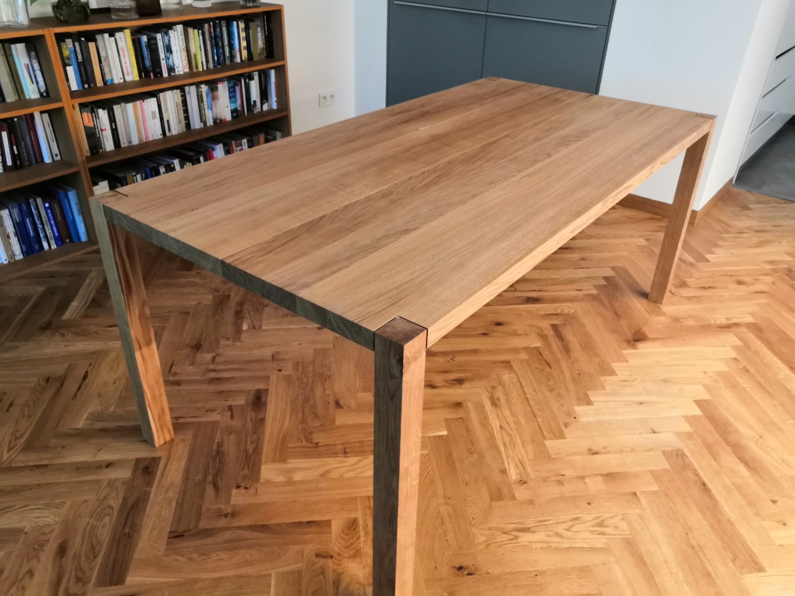 Jídelní masivní stůl z dubu, dřevěný stůl z dubového dřeva, dubový atypický jídelní stůl, výroba masivních atypických stolů na zakázku, dubový kancelářský stůl, dubový stůl z masivu, výroba masivních stolů, stolků a taburetů na zakázku.